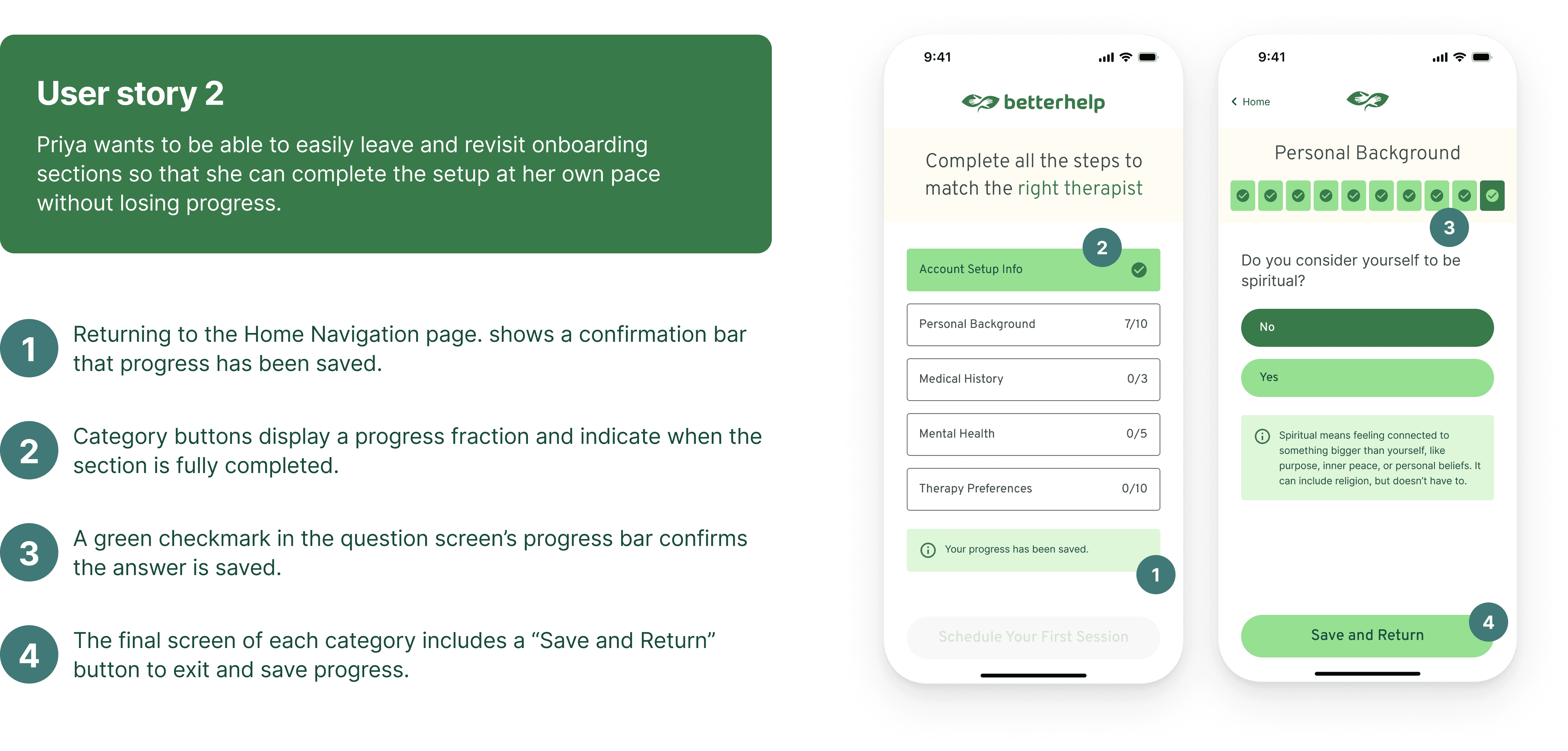 Users appreciated the save-and-return function, which gave them a stronger sense of control and reduced the pressure to complete everything in one sitting.