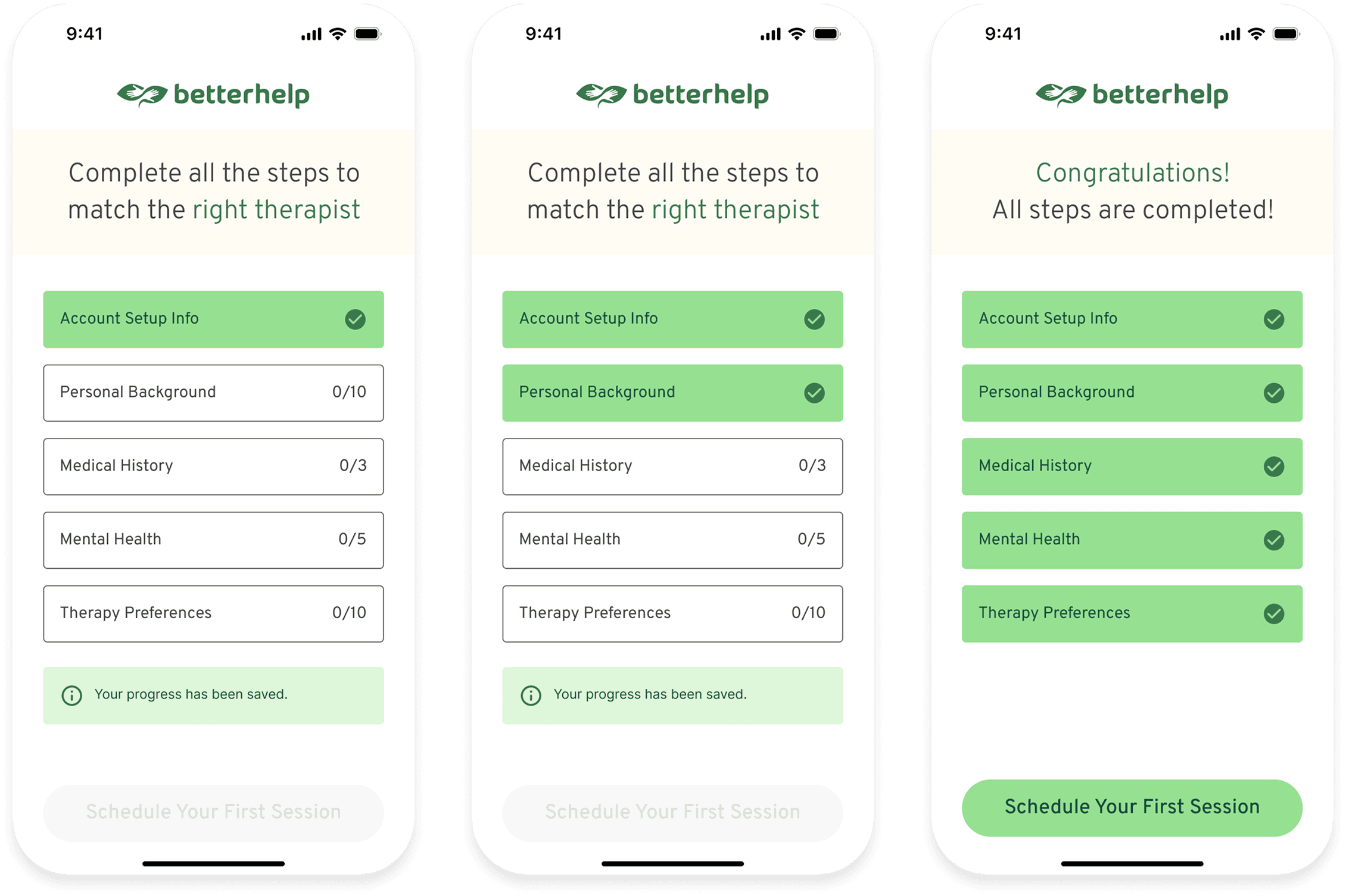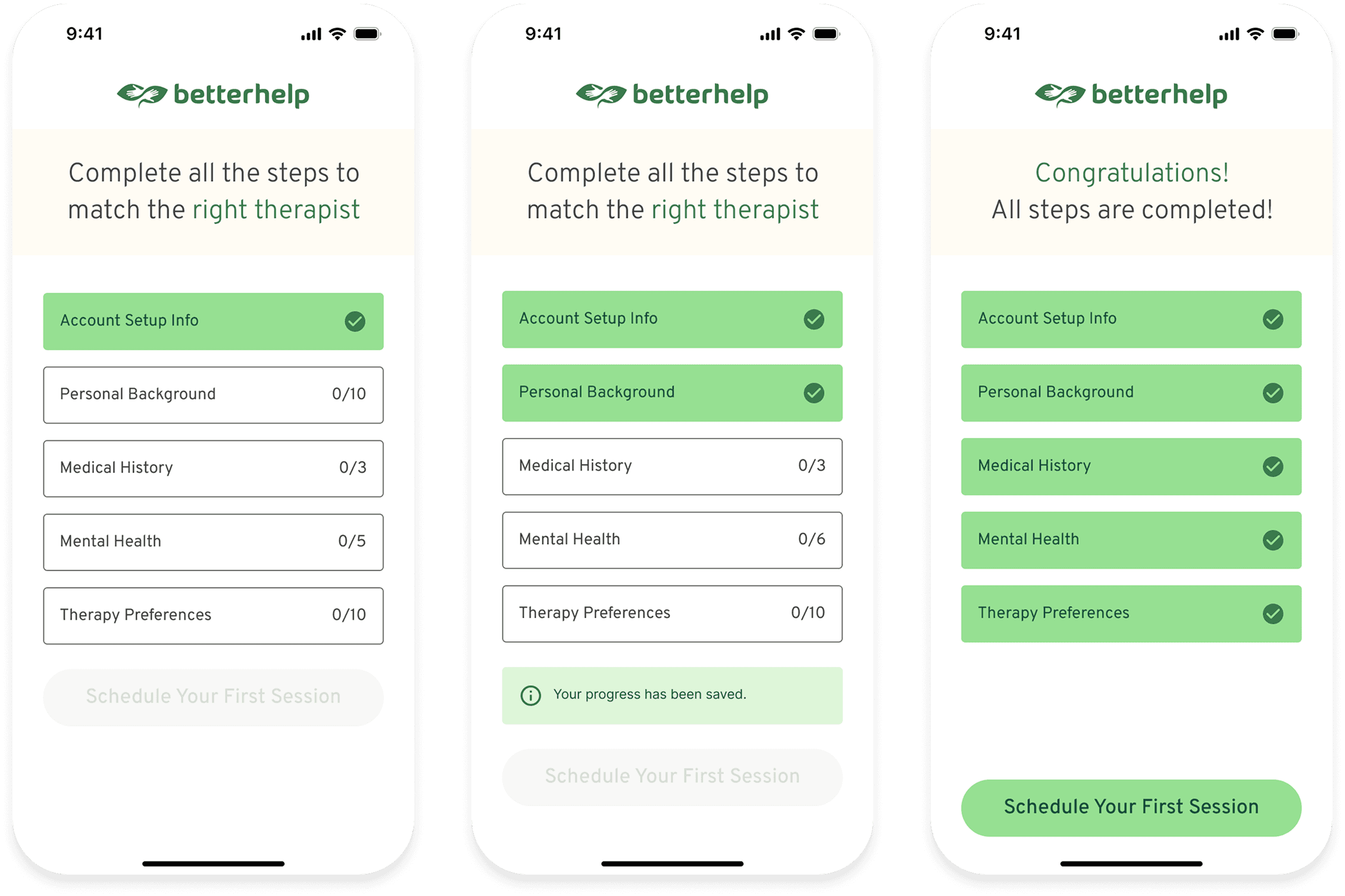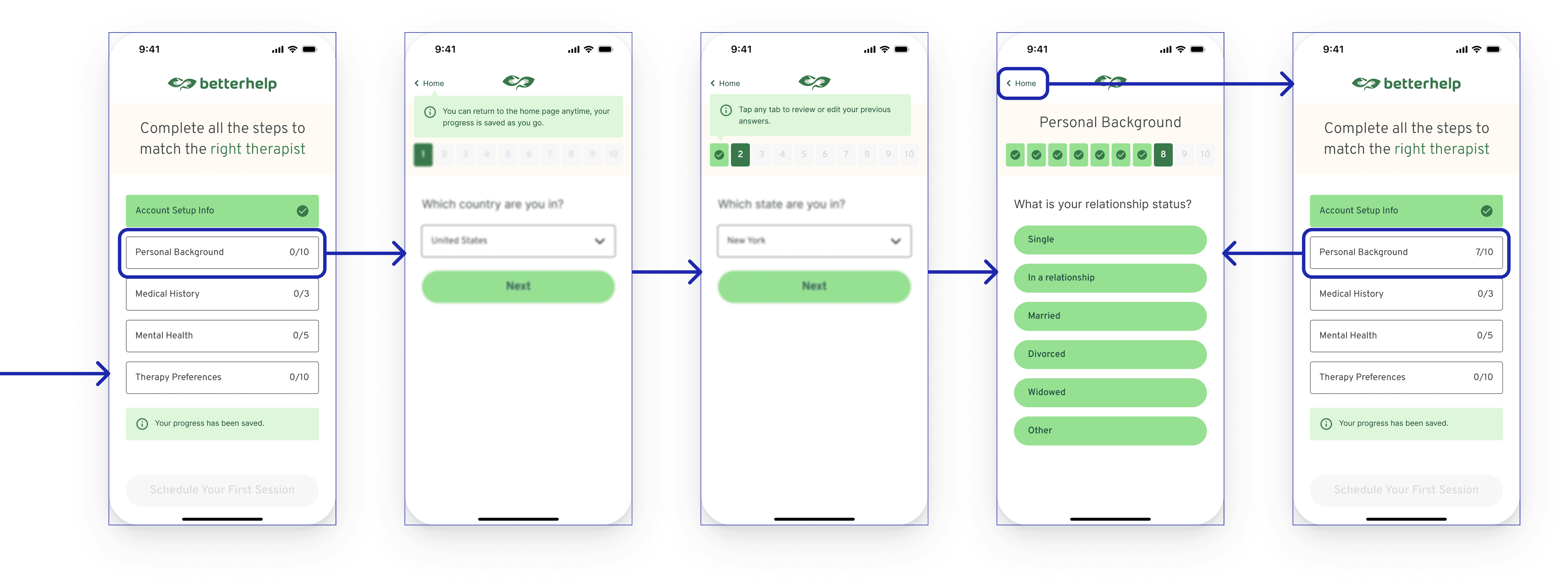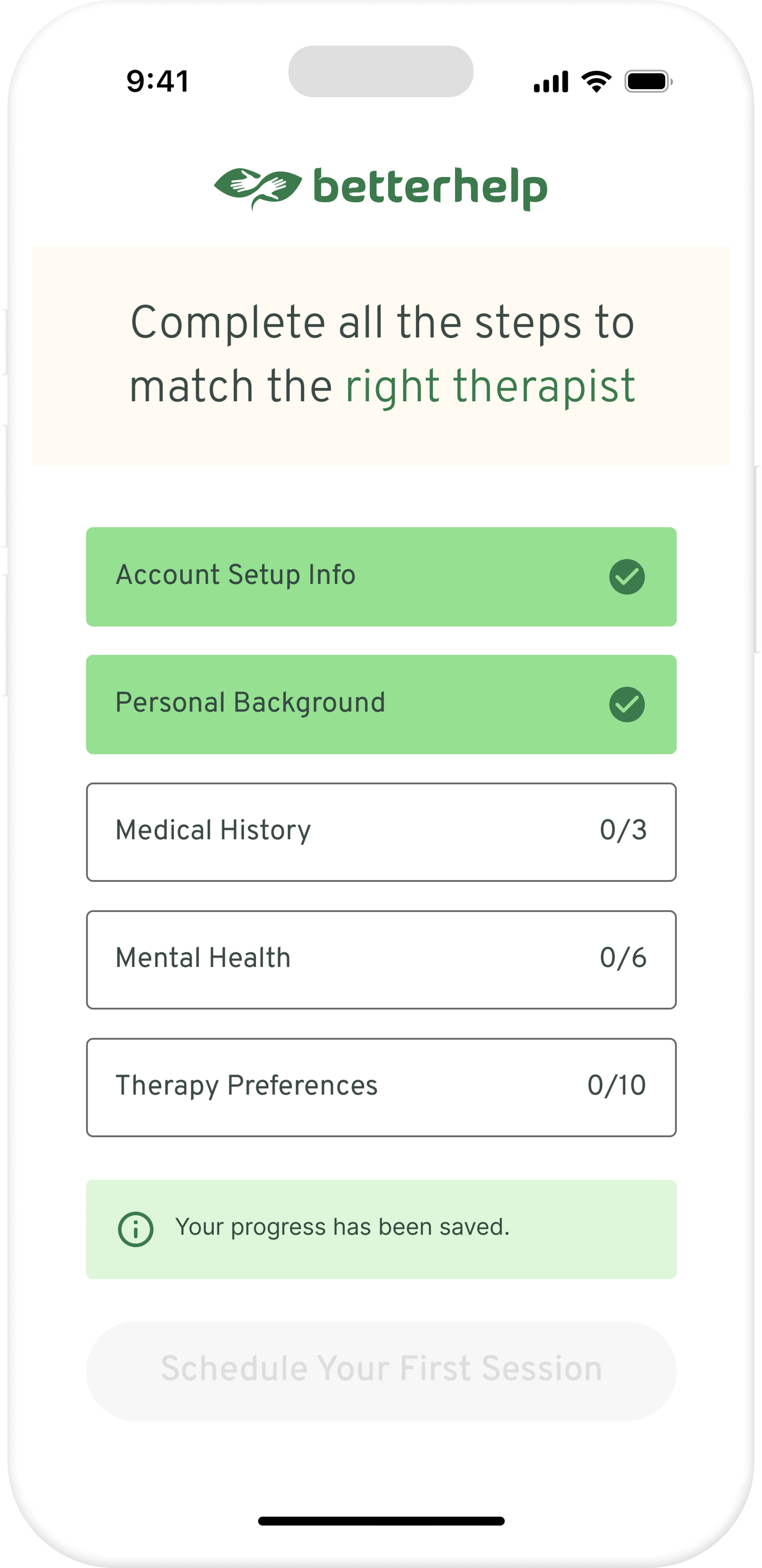 Users of the Better Help app need a way to easily navigate the onboarding process, because when it can feel cumbersome, users will feel less inclined to finish setting up and leave out information that will be important to pair a user with the right therapist.