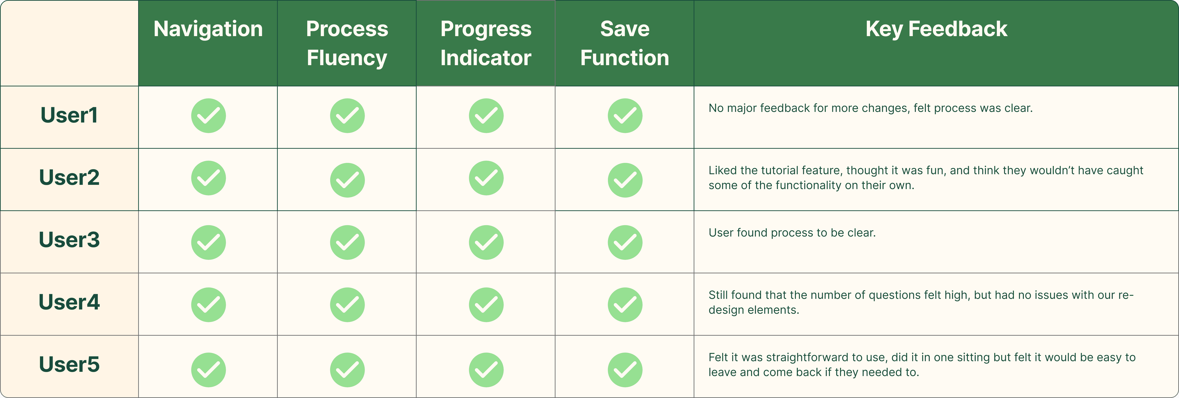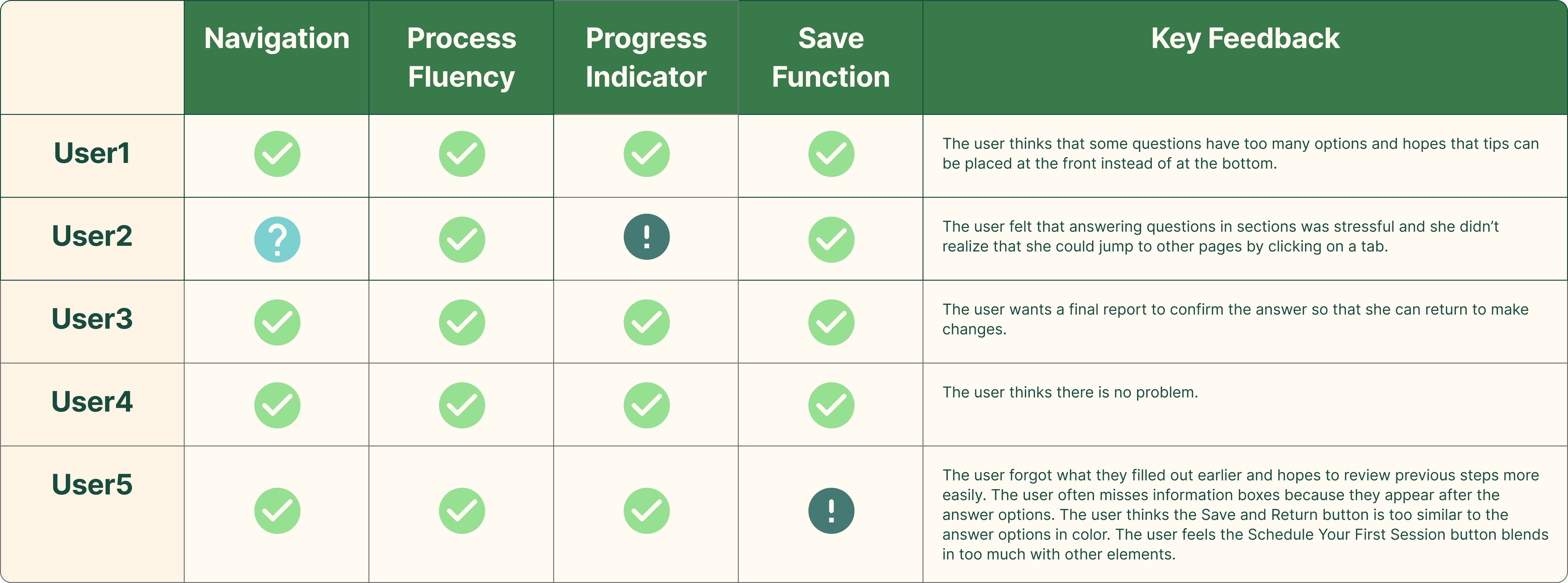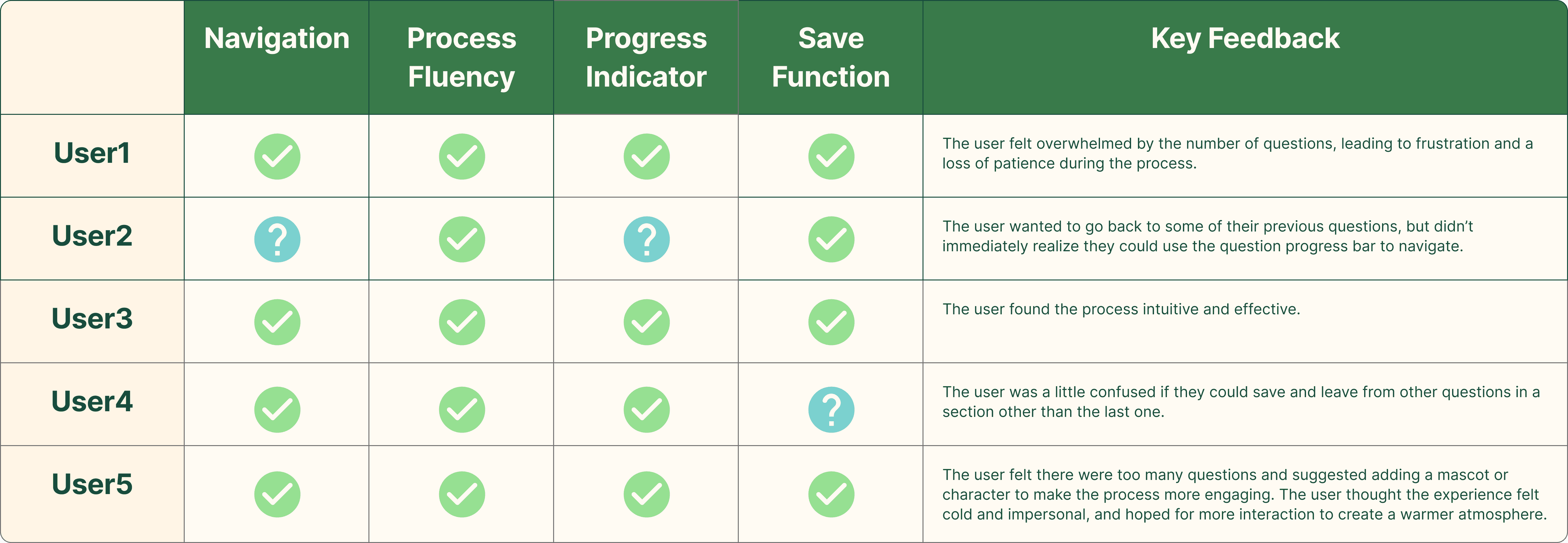 These findings pointed to opportunities to simplify, better group related questions, and introduce checkpoint logic to reduce user overwhelm.