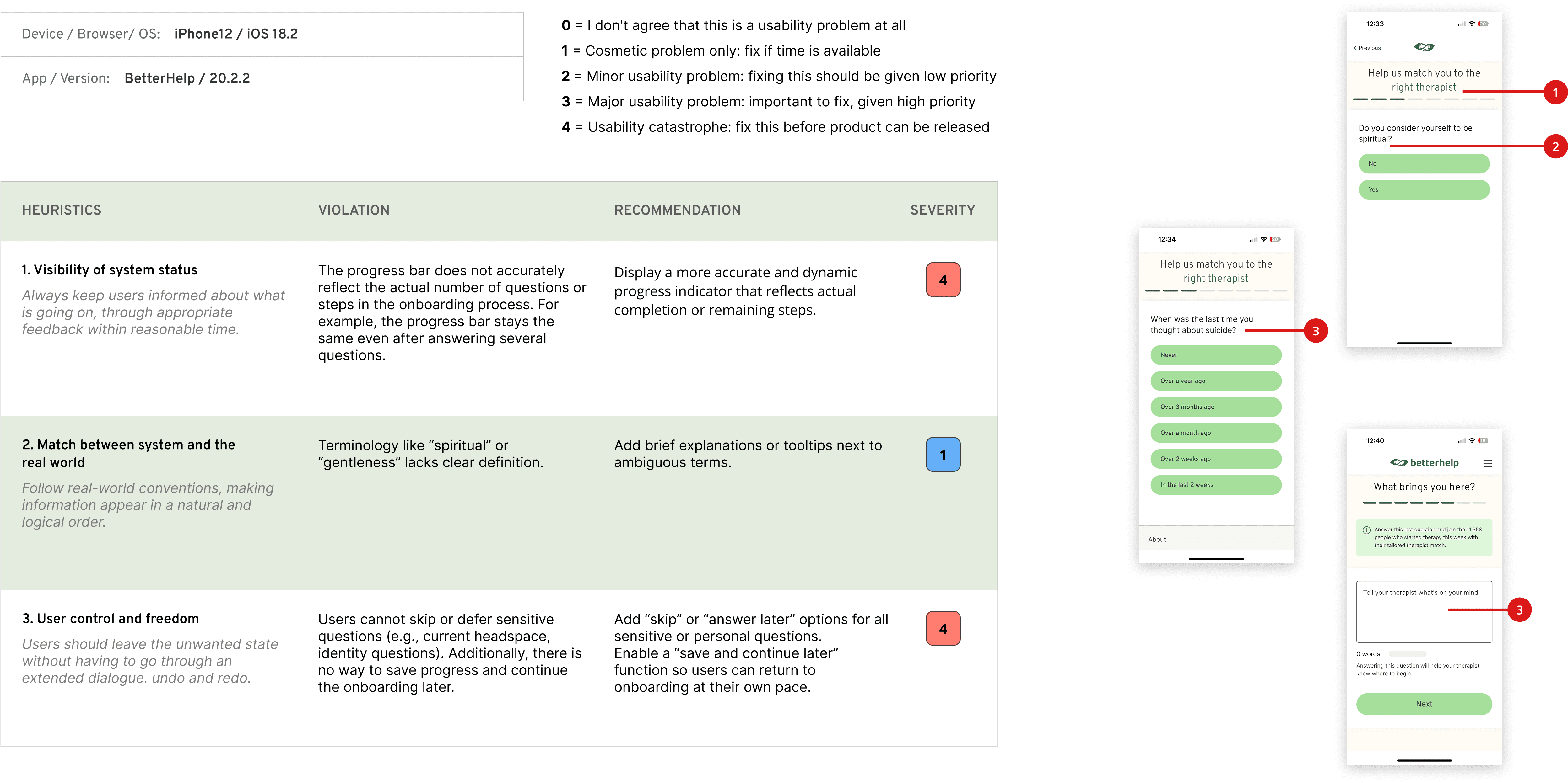 To evaluate the usability of the current onboarding flow, we conducted a heuristic analysis using Jakob Nielsen’s 10 usability principles.