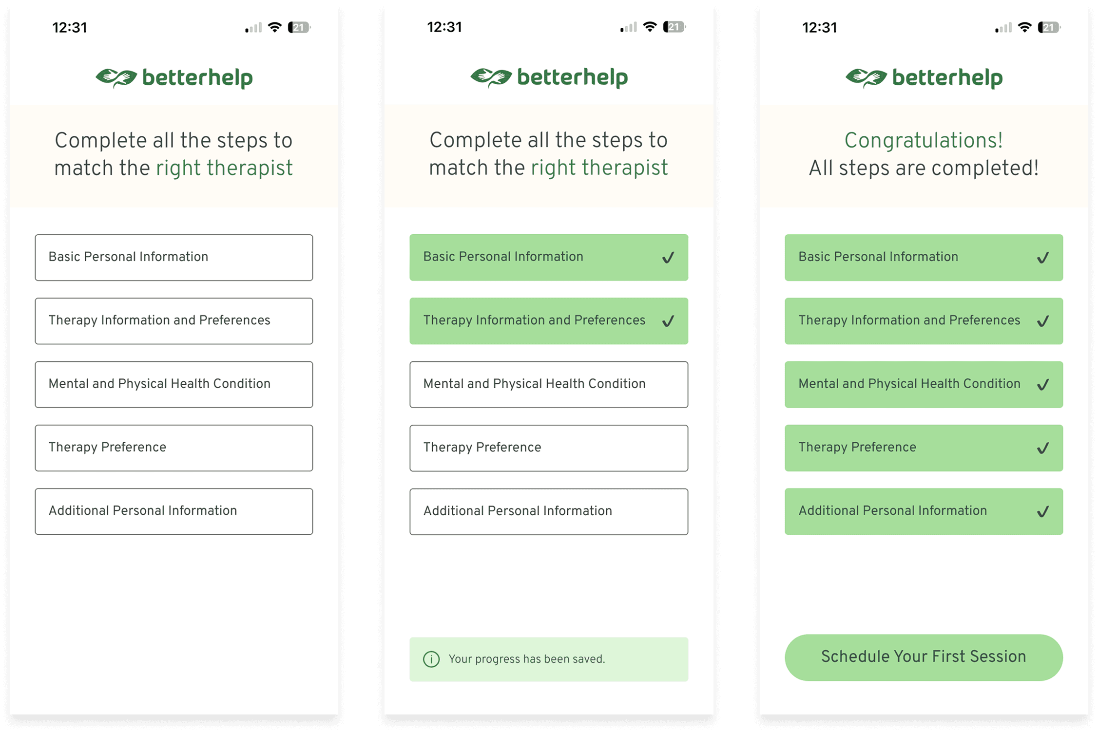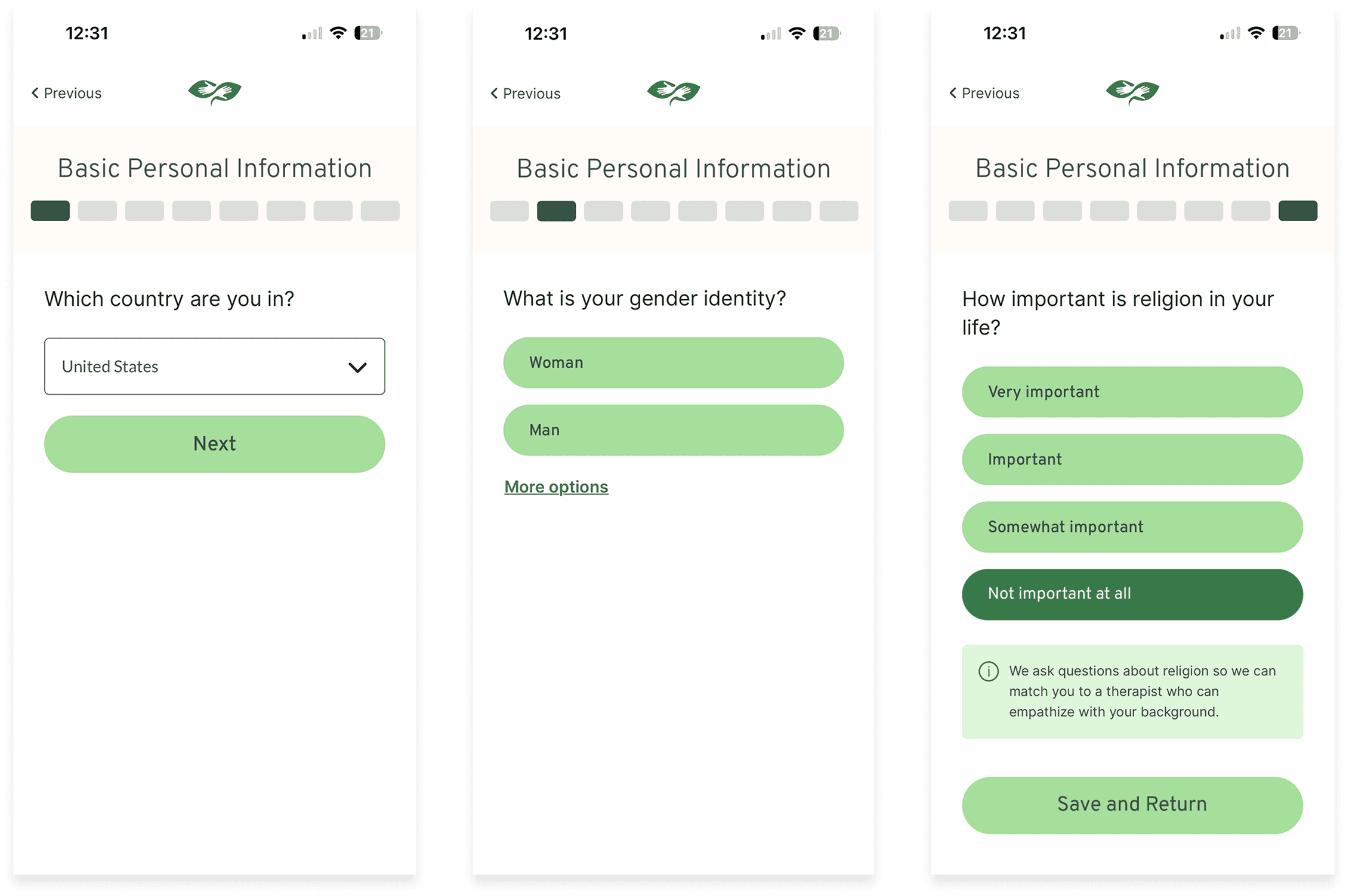 By looking beyond just mental health apps, we were able to gain a more well-rounded perspective on how different types of products approach onboarding, especially when asking users to be vulnerable or share sensitive information.