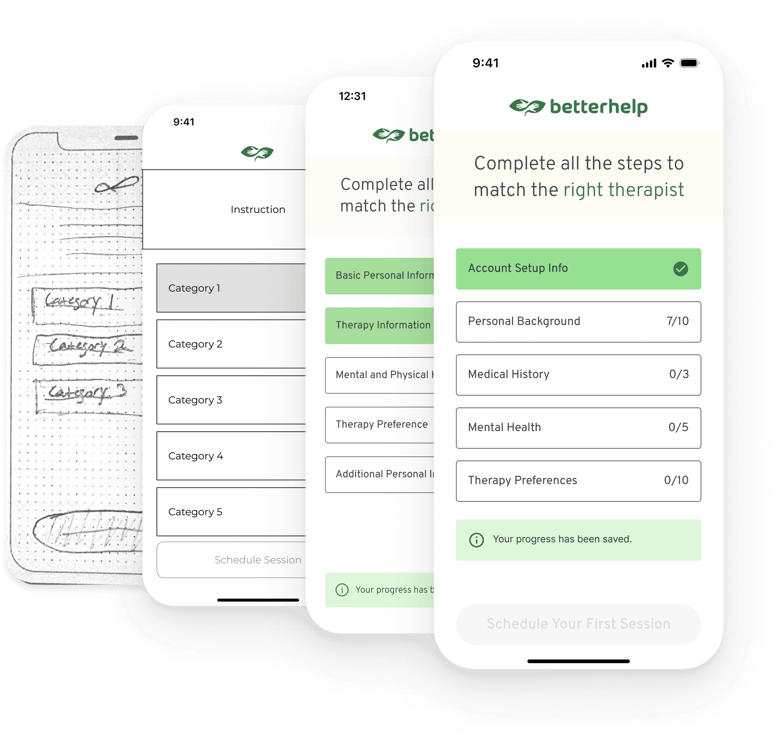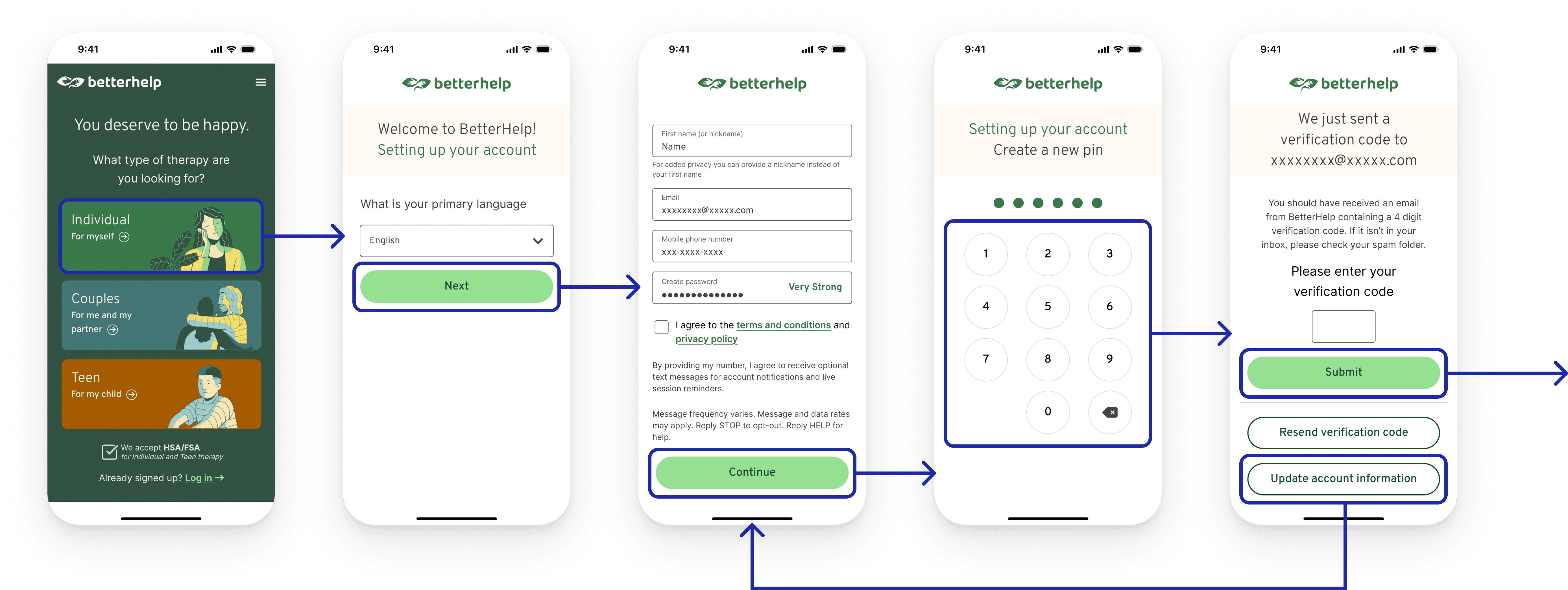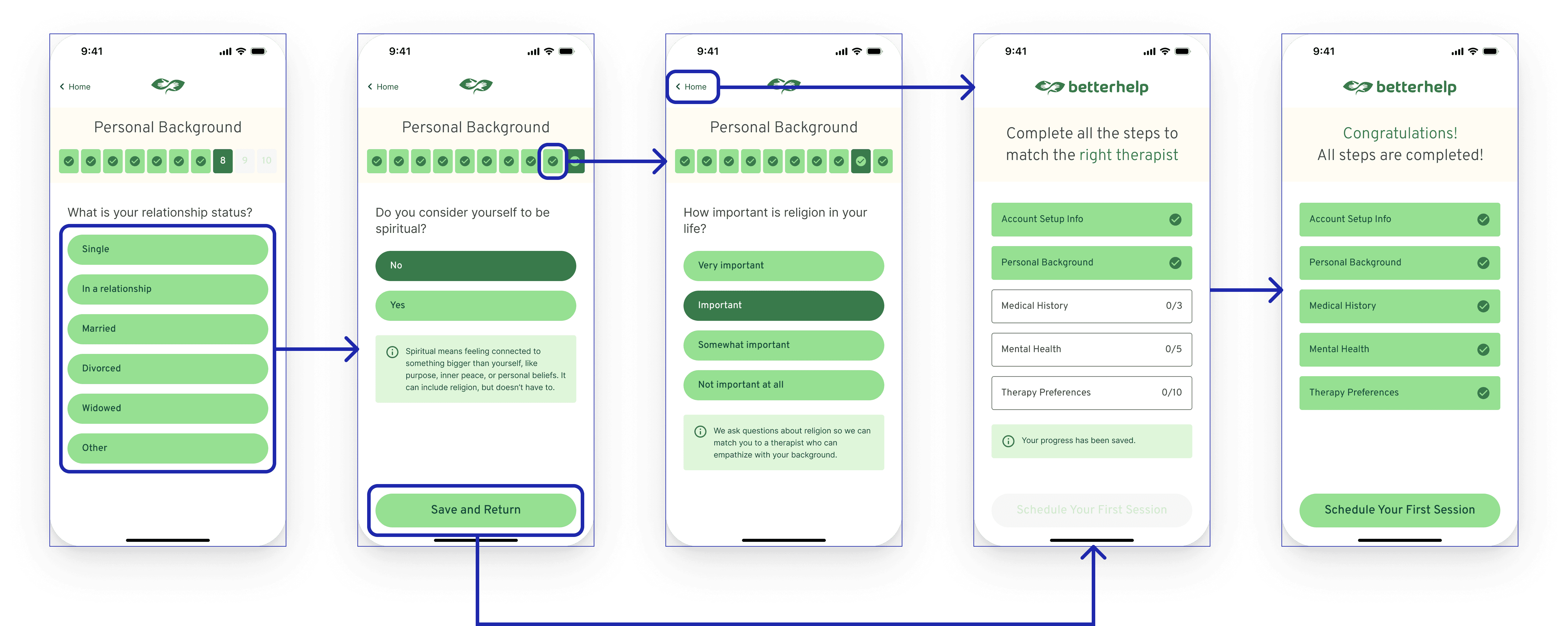 In the user research phase, we conducted five user interviews to map out individual user journeys through the current BetterHelp onboarding experience. These conversations helped us better understand how real users perceived and interacted with the flow.
