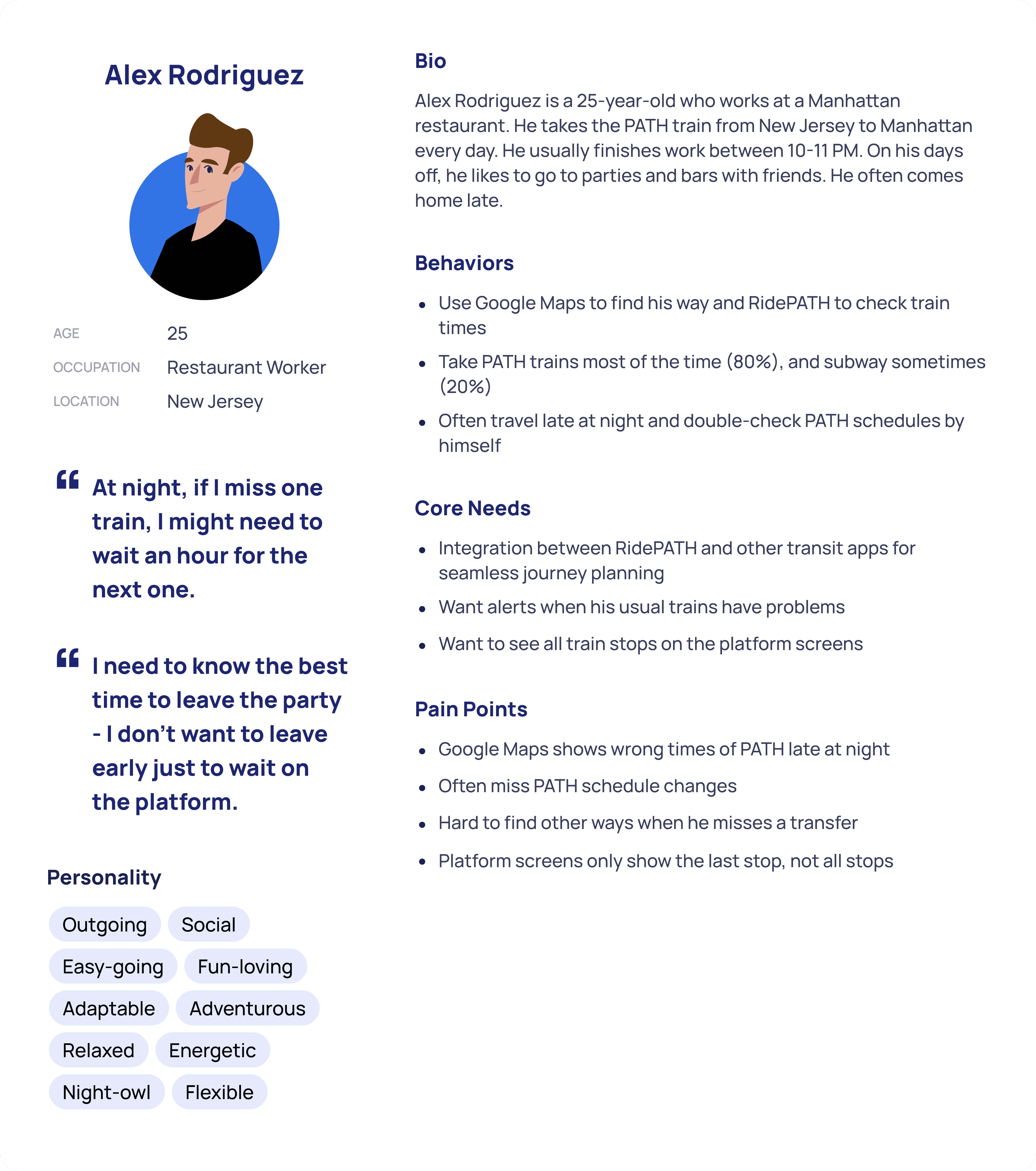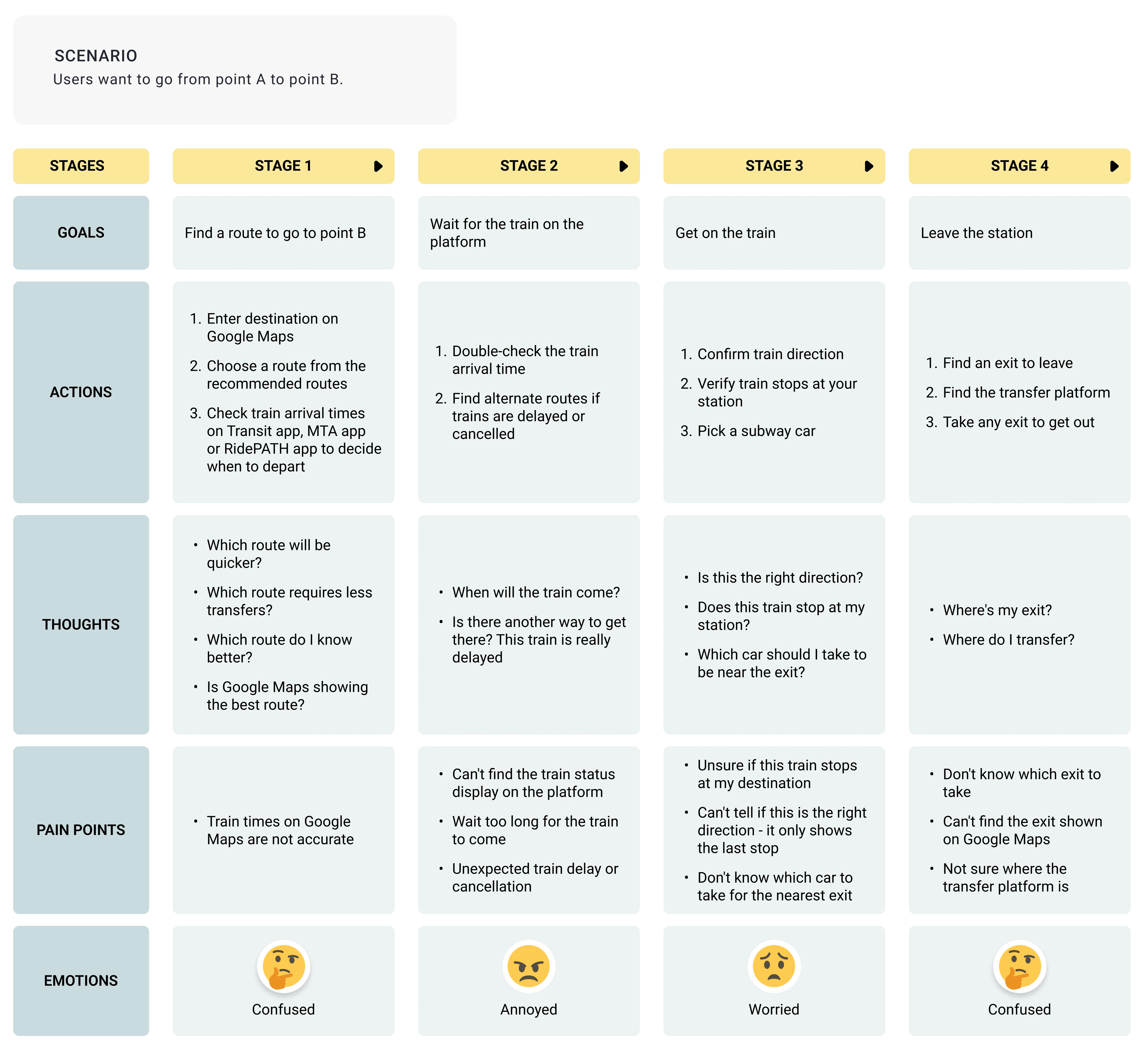 According to the user interview, this is a complete step-by-step diagram of how a user travels from point A to point B.