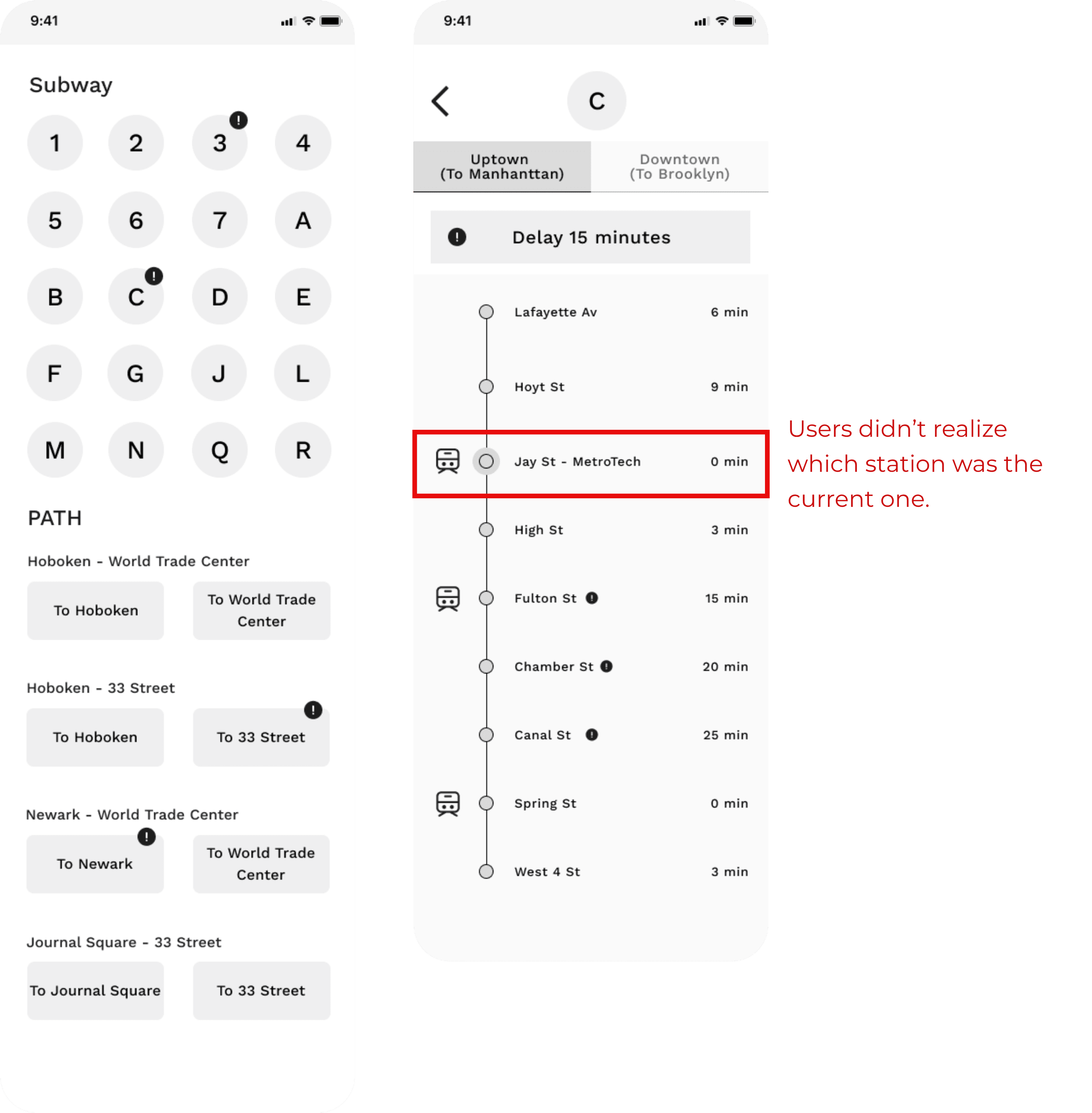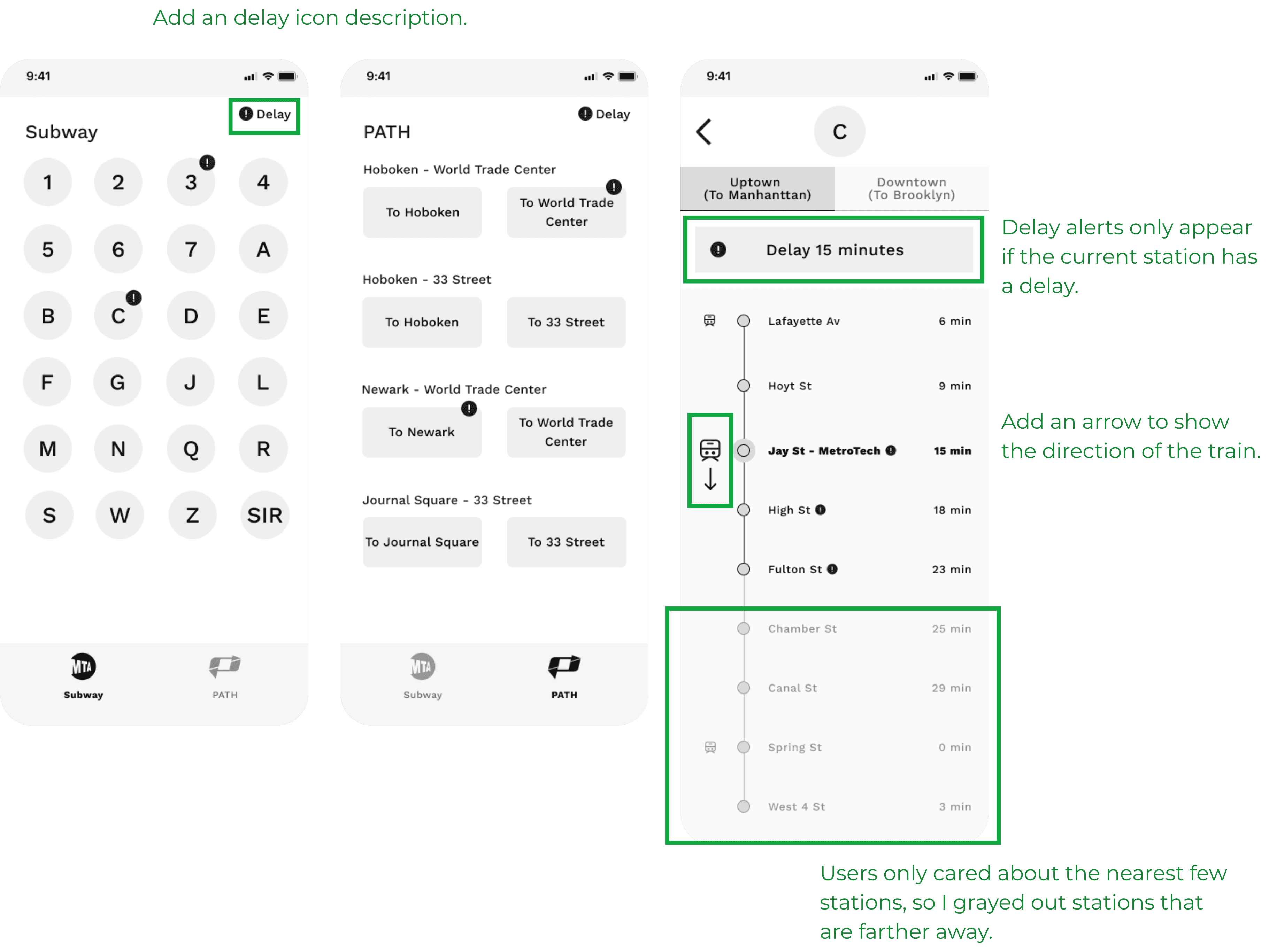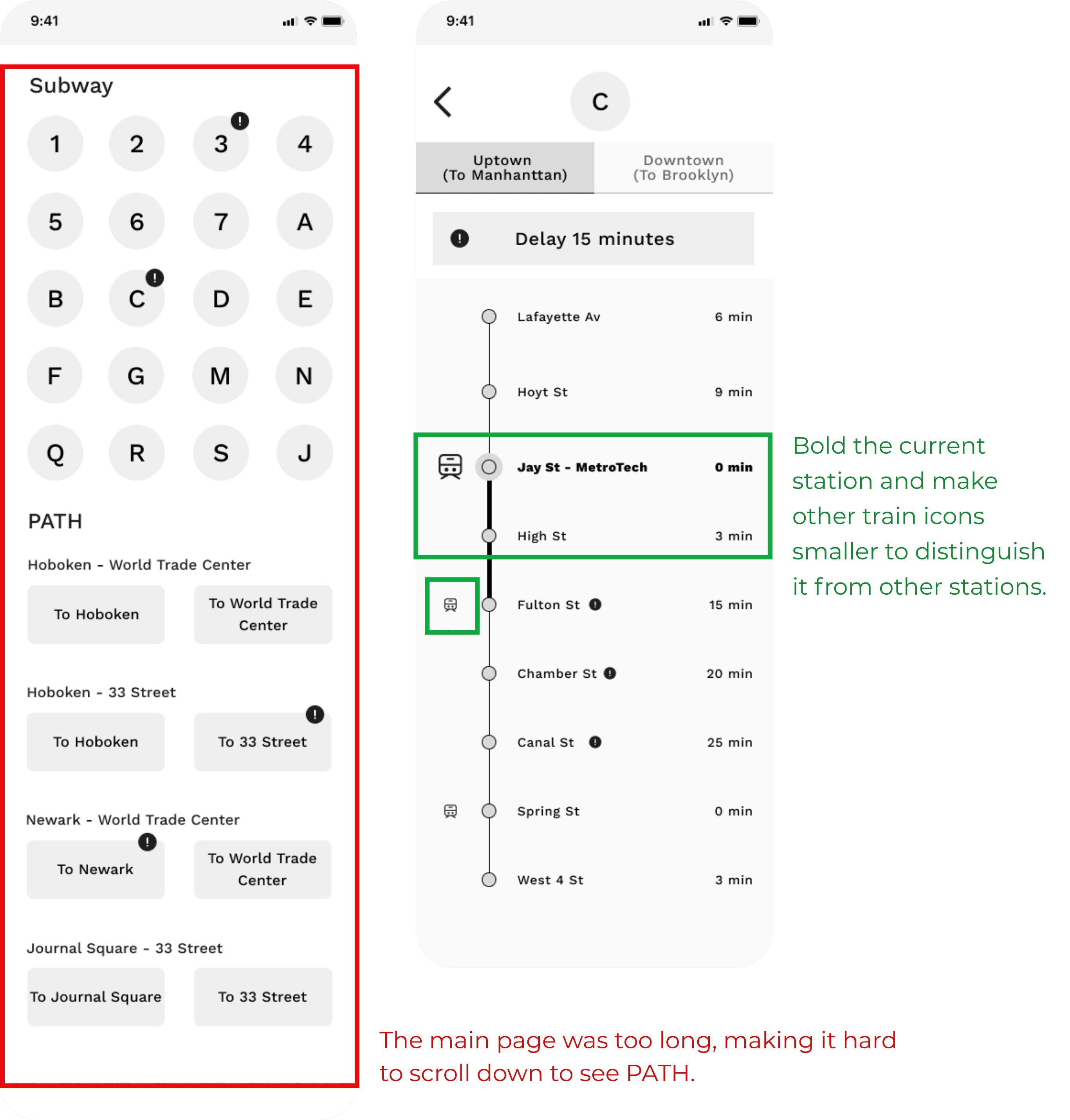 I looked into MTA, Subway Time, and Google Maps. MTA focuses on general navigation, and Subway Time allows users to check subway schedules but does not include PATH.