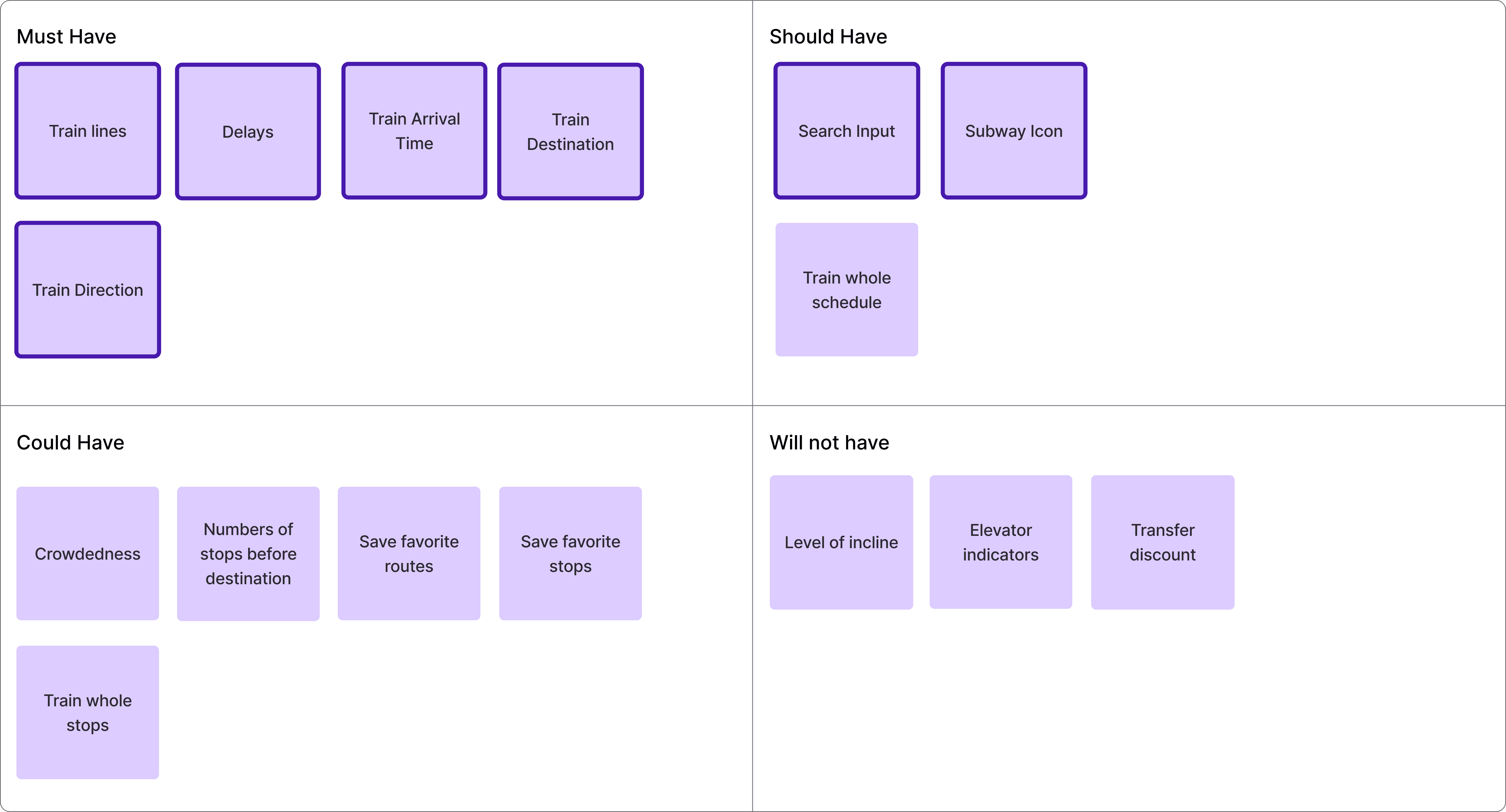 After prioritizing features, I plan to develop all Must-Have features and two Should-Have features because they improve visual clarity.